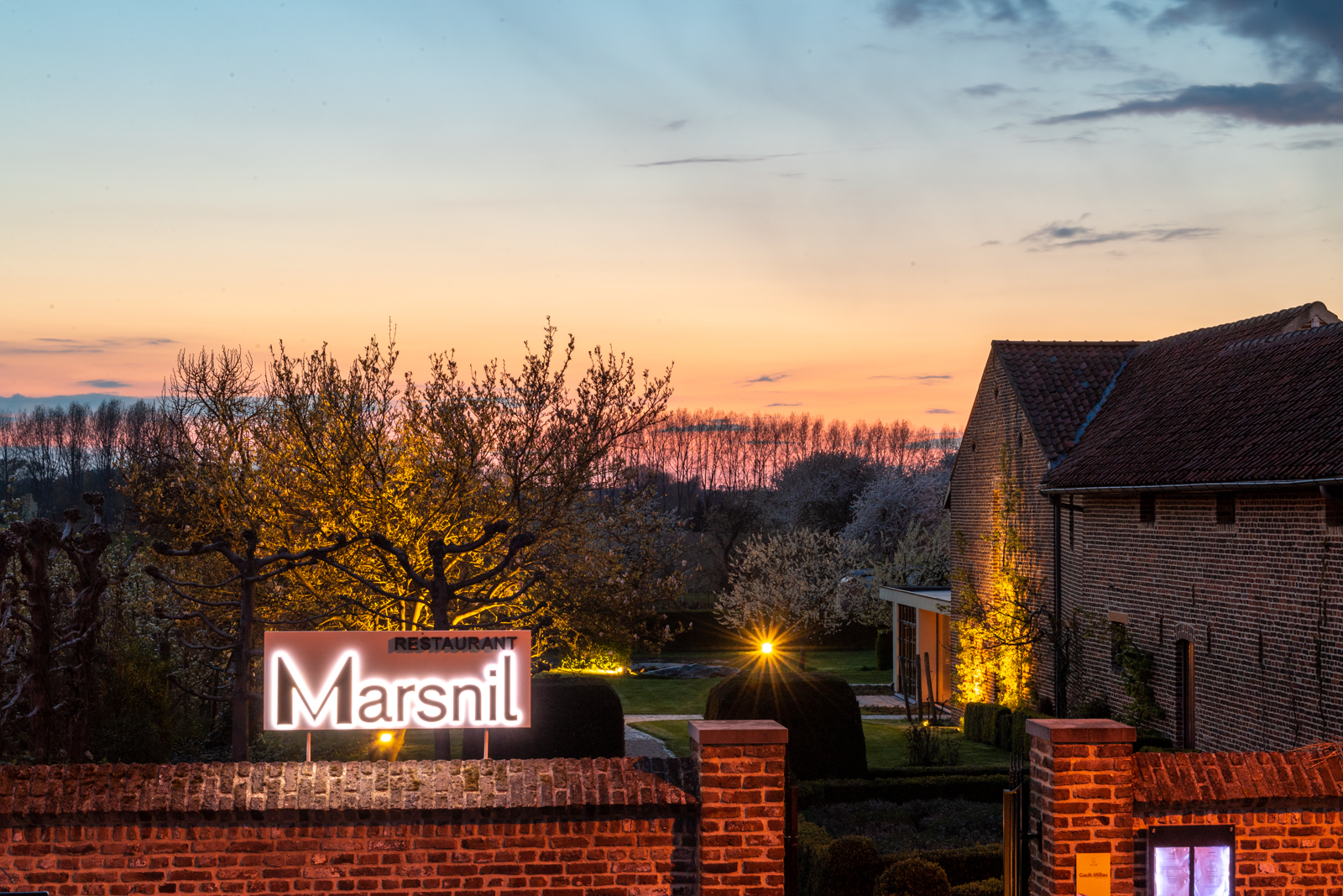 De naam Marsnil verwijst naar Frederiks familie langs moederszijde die generaties lang – en nu nog – de prachtige vierkantshoeve beheerde, waarin het nieuwe restaurant op een unieke manier is geïntegreerd.