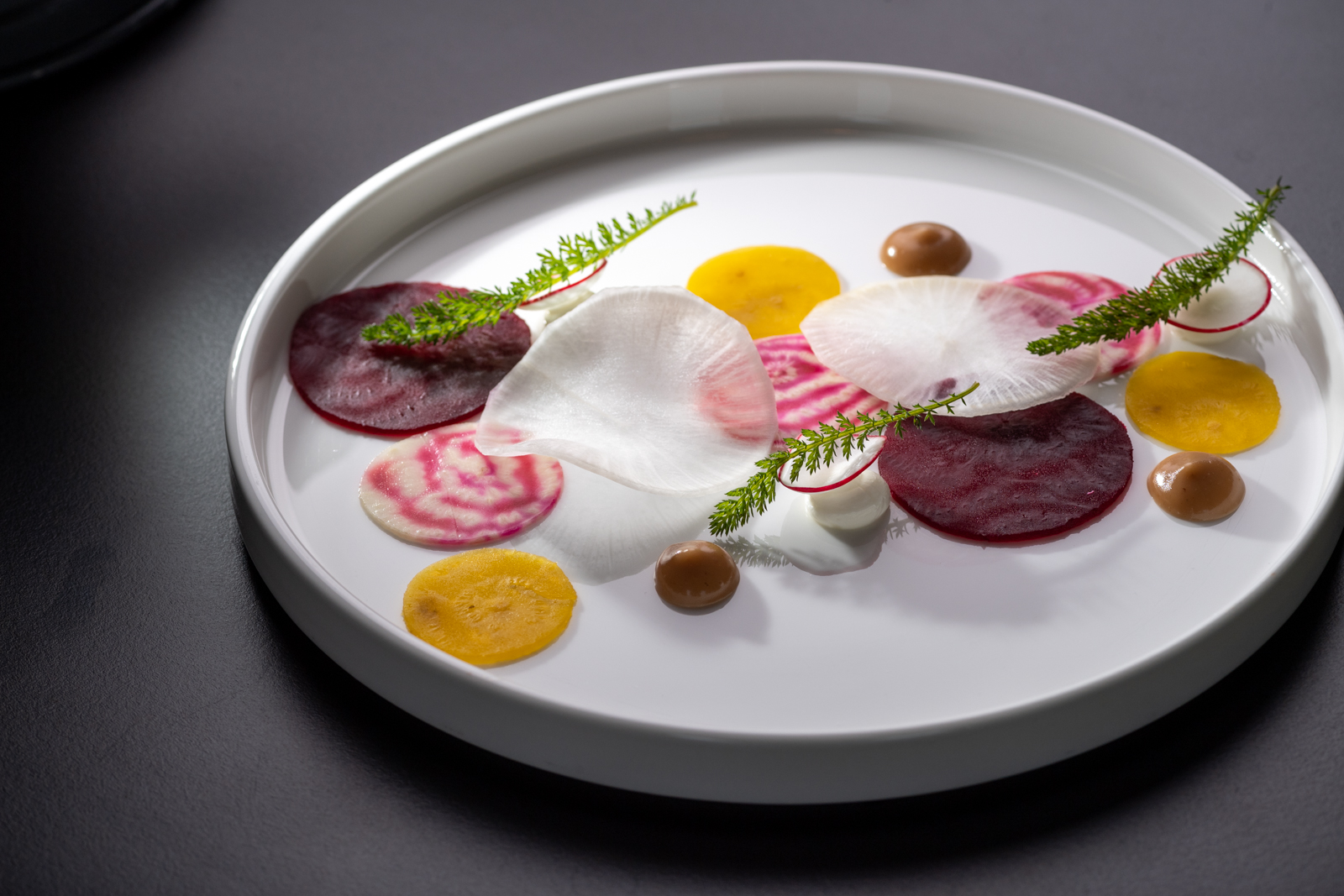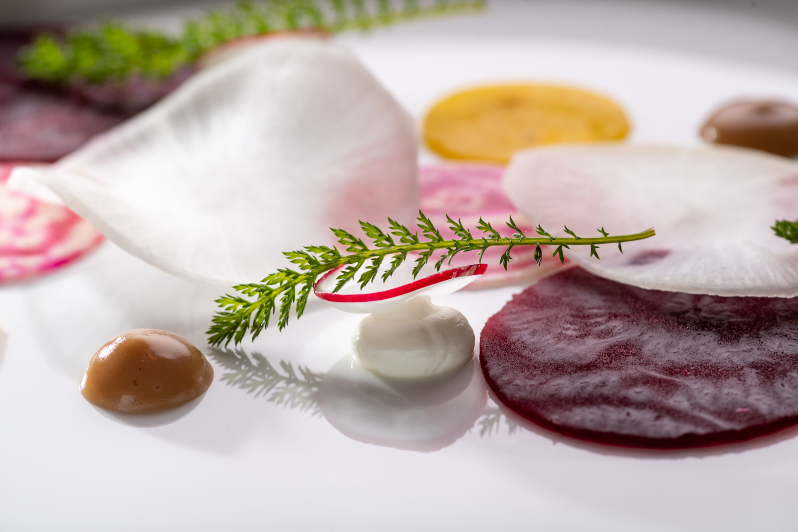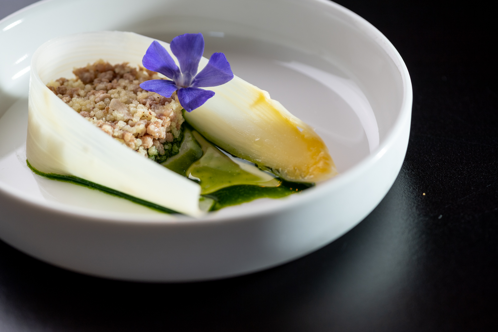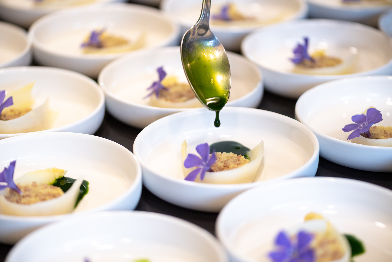 Frederik overgiet zijn creaties met die typisch Haspengouwse smaken en snuifjes, die zijn gerechten de geur en kleur van deze gezegende landstreek meegeven.